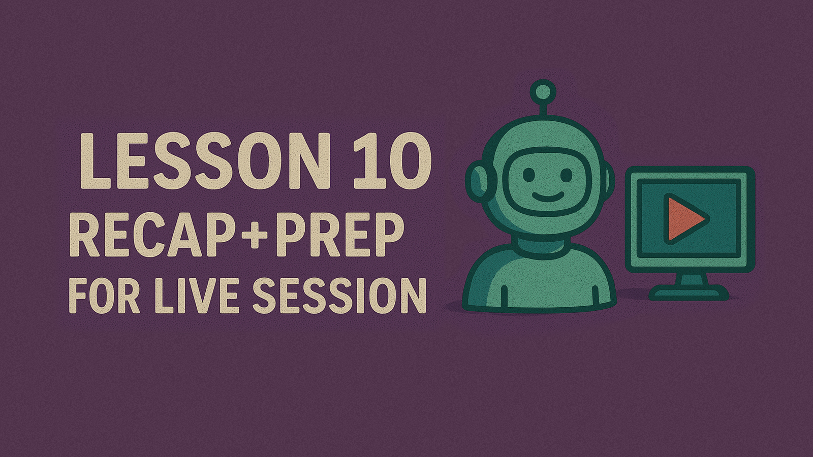 Objective: Review core concepts from Lessons 1–9, prepare for the first live session, and complete a quick practice challenge using AI.